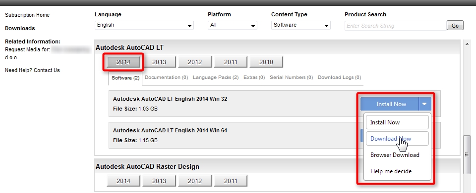 Ukoliko ste korisnik Autodesk pretplate, za inačice 2014 vjerojatno niste dobili instalacijski medij, već vam je omogućeno preuzimanje instalacijskih datoteka iz pretplatničkog centra. Ukoliko to još niste učinili ovdje možete saznati kako.
