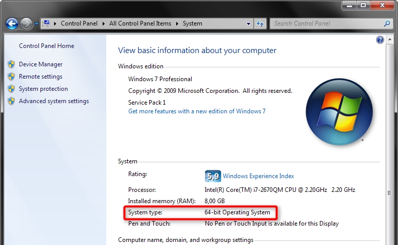 Napomena: u Windows operativnom sustavu, inačicu OS-a (32 ili 64-bit) možete vidjeti u svojstvima računala (Control panel>System ili Upravljačka ploča>Sustav).