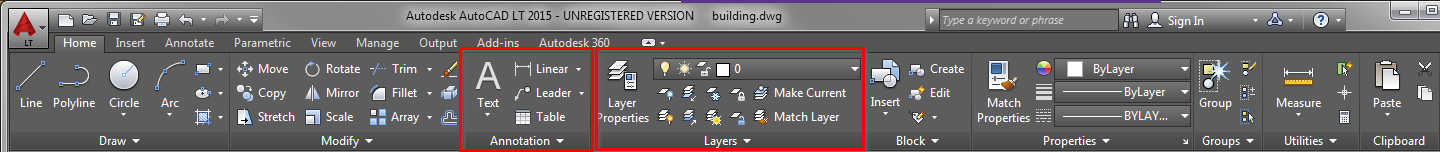 Alati za opremanje crteža premješteni su uz alate za uređivanje crteža, a alatai za rad sa slojevima logičnije se raspoređeni i organizirani