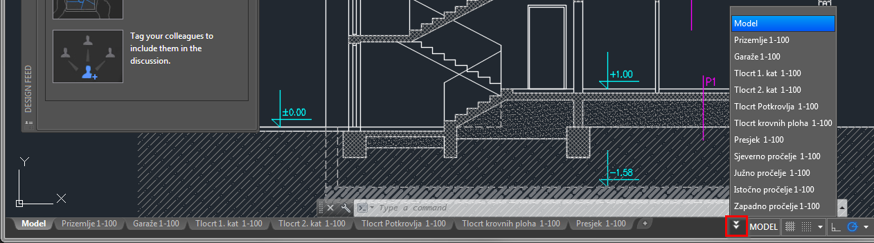 Zadržavanjem pokazivača miša iznad kartice layouta prikazat će se umanjena slika layouta, a nova kartica “+” omogućuje jednostavno otvaranje novih layouta