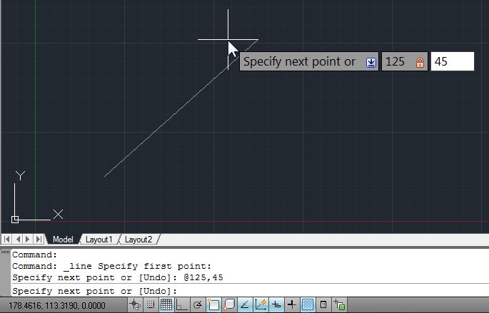 Primjetite kako AutoCAD automatski dodaje znak "@" za relativnu koordinatu.