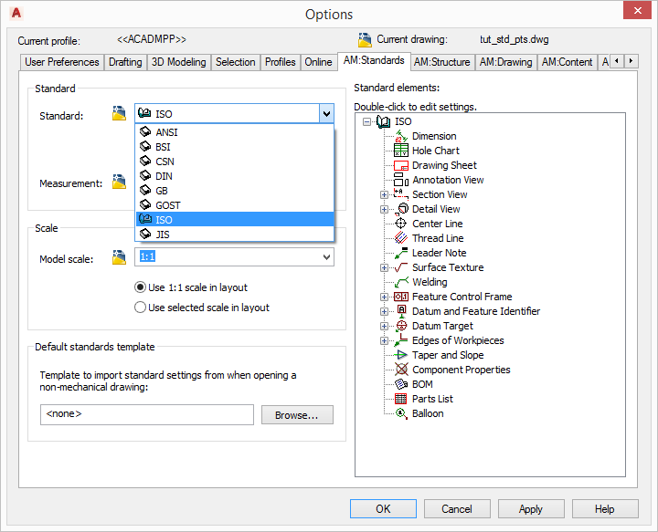 AutoCAD Mechanical podržava mnoštvo međunarodnih standarda, što omogućuje jednostavnu standardizaciju i prilagodbu svakom korisniku. Na raspolaganju su sljedeći standardi: ANSI, BSI, CSN, DIN, GB, GOST, ISO i JIS. Svaki standard je moguće dodatno prilagoditi svojim potrebama i standardima crtanja inženjerskog ureda ili tvrtke.