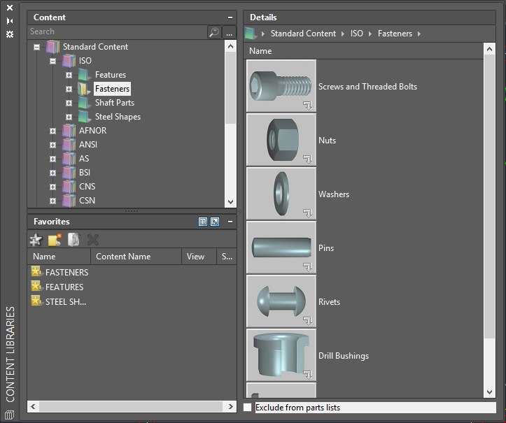 Biblioteka s više od 700.000 standardnih strojarskih elemenata koja dolazi u paketu značajno pojednostavljuje konstruiranje i rascrtavanje. Umetnuti elementi automatski se smještaju na pravilan način, bez potrebe za dodatnim uređivanjem crteža oko njih. Promjene su jednako jednostavne – samo promijenite parametre standardnog elementa ili ga čak zamijenite sa drugim, bez potrebe za dodatnim uređivanjem crteža. Svi standardni dijelovi automatski se dodaju u listu materijala i sastavnicu.